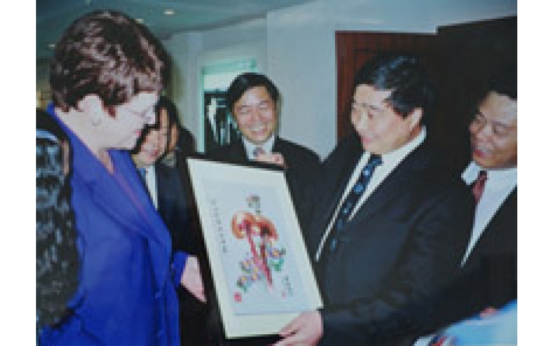 2004年9月,新西蘭前總理凱樂(lè).希普莉女士來(lái)公司參觀,陳惠董事長(zhǎng)向希普莉女士贈(zèng)送禮品。