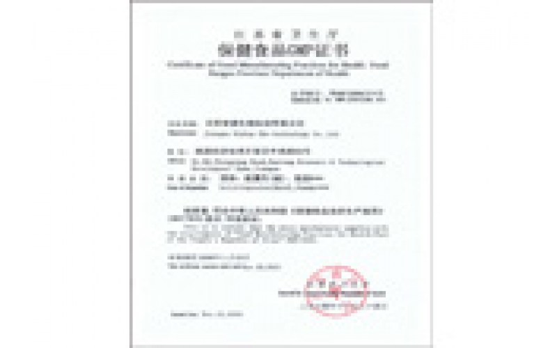 2004年11月26日,安惠公司生產(chǎn)車(chē)間通過(guò)保健食品GMP認(rèn)證。