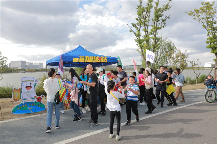 現(xiàn)場(chǎng)近450個(gè)家庭的近千名選手在一聲發(fā)令下,開始了環(huán)繞紫瑯湖的8.8公里的公益跑活動(dòng)。安惠公司在活動(dòng)沿途設(shè)立了能量加油站。安惠江海志愿者們?yōu)檫x手們送水,派發(fā)新品安惠牌靈芝孢子油番茄紅素軟膠囊體驗(yàn)裝,為他們加油鼓勁。選手們也紛紛駐足休息,拍照留念。